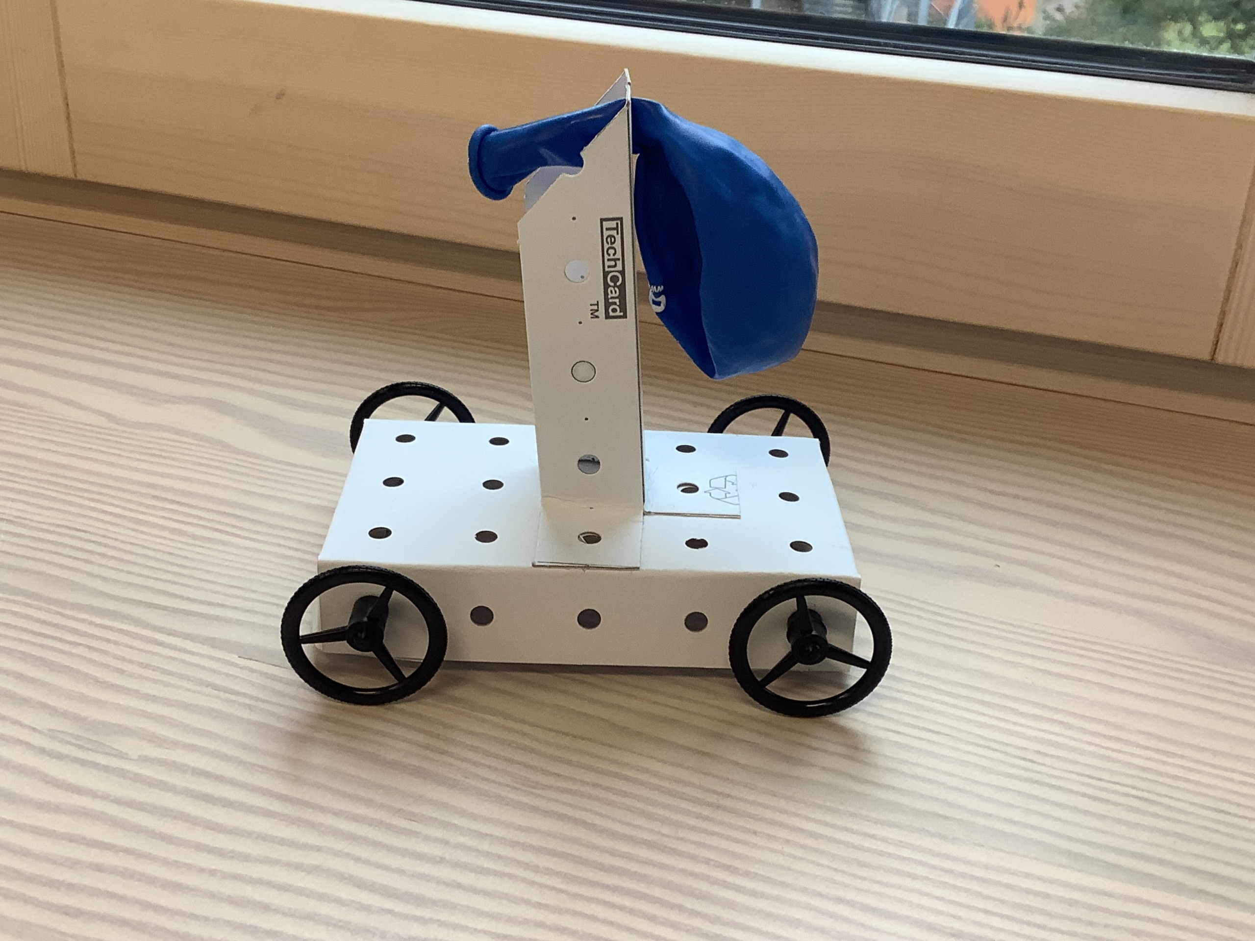 Zu Beginn des Nachmittags stand eine kreative Mitmachaktion auf dem Programm. Jedes Kind baute ein kleines Fahrzeug, das allein durch die Luft eines Luftballons angetrieben wird.