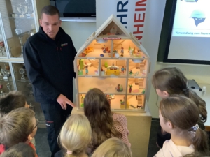 Als Hecker eine Lautsprecherbox hochhielt, war sie kaum zu hören. Doch sobald er sie auf den Tisch, an die Wand oder sogar auf den Kopf eines Kindes stellte wurde der Klang plötzlich laut und klar. Die Erkenntnis: Unser Kopf leitet Schall! Die Kinder durften selbst ausprobieren, wie gut ihr eigener Kopf als Resonanzkörper funktioniert.