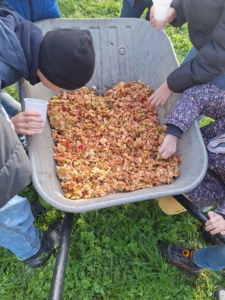- Eine besondere Premiere gab es mit Frau Rothbauer, die erstmals gemeinsam mit Kindern der Musikwerkstatt auftrat. Zusammen präsentierten sie das Lied „Jambo“ und brachten damit eine fröhliche Note in die Feier.
