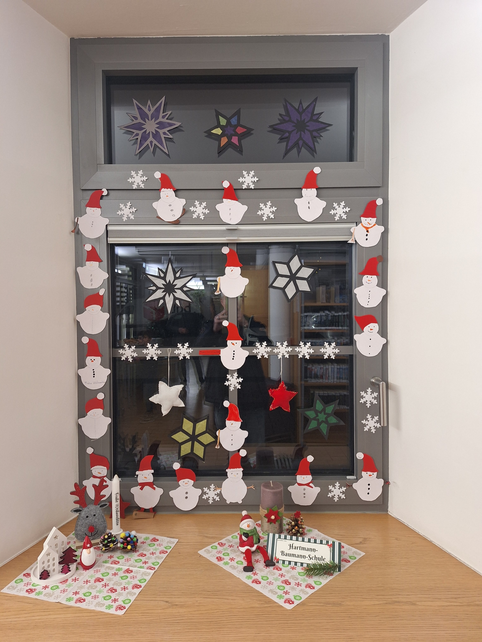 Die Klassen 2a, 2b, 3a, 3b, 3c, 4a und 4b haben mit viel Liebe zum Detail die Fenster der Stadtbibliothek gestaltet. Ihre fantasievollen Motive verbreiten eine stimmungsvolle, vorweihnachtliche Atmosphäre und laden Passanten zum Verweilen ein.