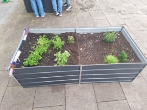 Zu Beginn wurden vier Hochbeete aufgebaut und anschließend bepflanzt. Dabei setzten die Kinder unter anderem Radieschen, Karotten, Frühblüher und verschiedene Kräuter ein.