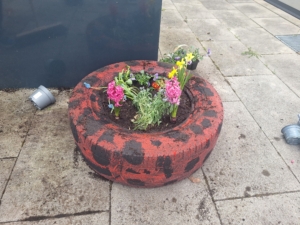 Zusätzlich entstanden weitere Beete in zwei ausrangierten Autoreifen.