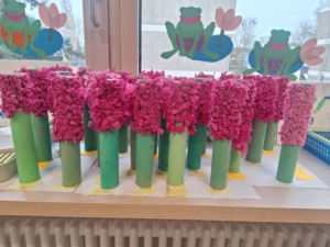 Außerdem bastelten sie Hyazinthen aus Zewarollen und Krepppapier.