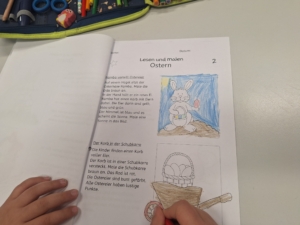 Ergänzend dazu arbeiteten die Schülerinnen und Schüler an verschiedenen Lernstationen, die sich mit typischen Aspekten des Frühlings beschäftigten.