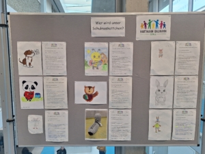 Ein weiterer Programmpunkt war die Ausstellung der Finalisten im Wettbewerb „Schulmaskottchen“. Hintergrund ist die Suche der Schule nach einem eigenen Maskottchen. Viele Kinder hatten Vorschläge gezeichnet, aus denen die Mini-SMV eine Vorauswahl getroffen hat. Die Finalisten wurden nun erstmals öffentlich präsentiert. Nach den Osterferien werden die Vorschläge in einer Schulversammlung vorgestellt, anschließend folgt die Abstimmung aller Grundschülerinnen und Grundschüler und Lehrkräfte.