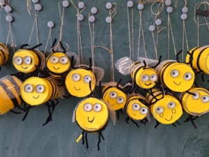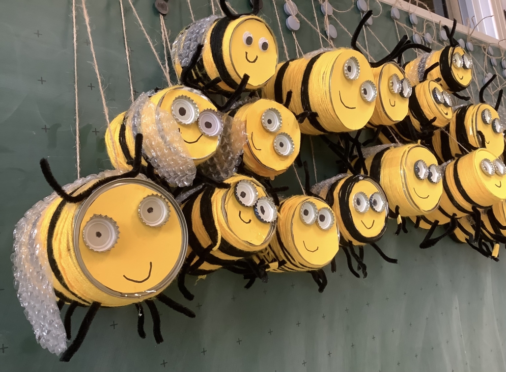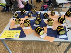 Neben den Sachthemen arbeiteten die Kinder auch kreativ. Aus leeren Dosen entstanden „Dosenbienen“, die mit viel Sorgfalt gestaltet wurden.